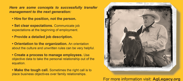 How do you plan to successfully transfer management duties in your AG LEGACY?